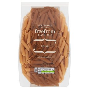 Made from 100% brown rice flour. A bit more forgiving in cooking time than pea pasta (and cheaper too). A brand called Felicia also offer a spaghetti version if that suits your preferences more.